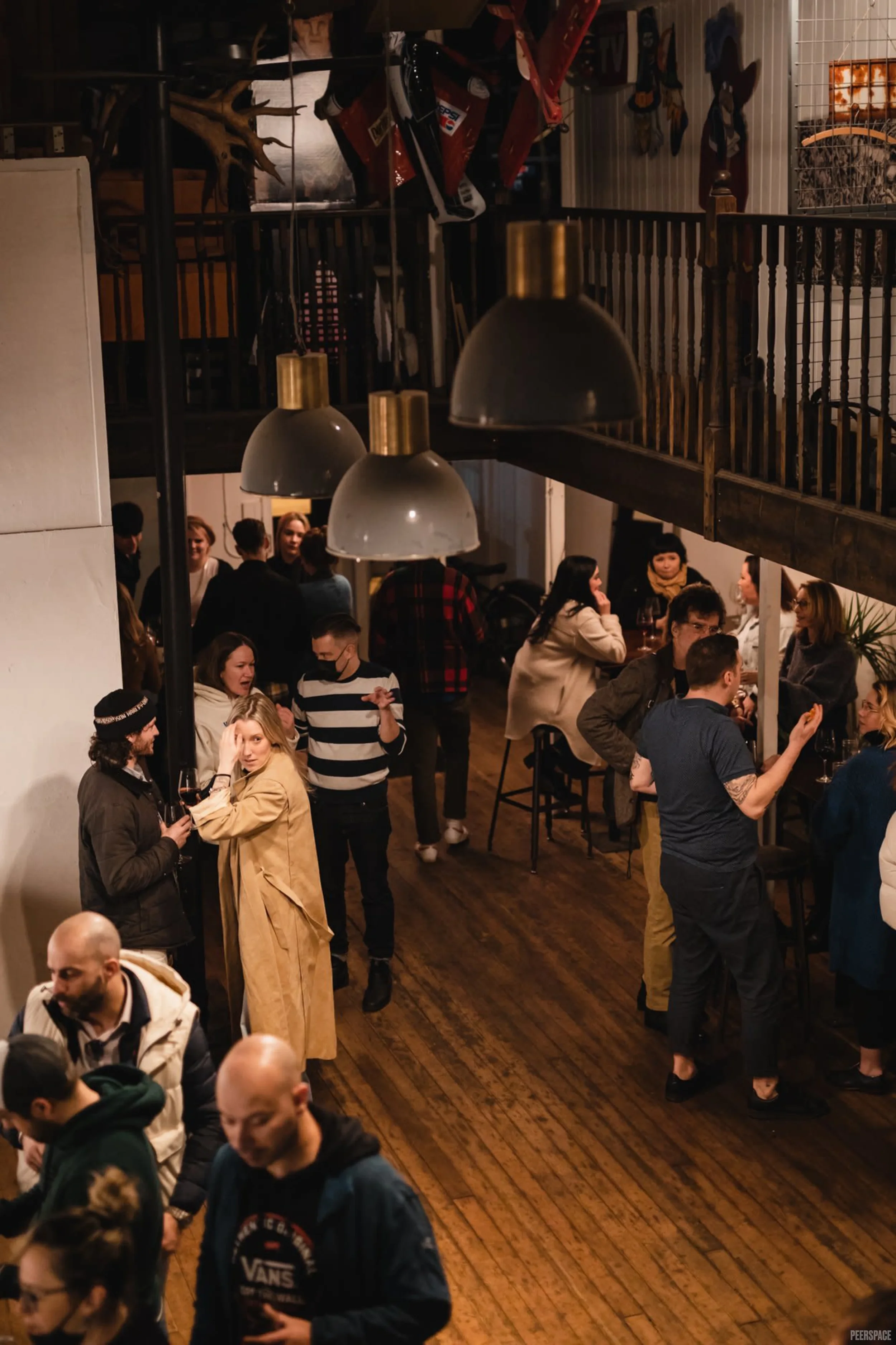 Today, the Ellis Building is home to artist studios, workshops, and unique gathering spaces designed to bring people together. The ground floor event space features a warm, saloon style interior with rich wooden details, a classic Western inspired bar, and layered seating areas that overlook the main floor. The atmosphere is intimate, welcoming, and timeless, making it well suited for everything from private celebrations and weddings to performances, film productions, and community events.